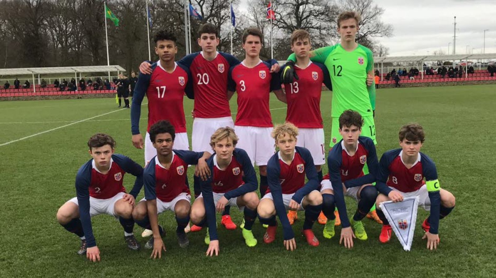 Leo Fuhr Hjelde (draktnummer 3) debuterte da Norges G16-lag tapte mot Brasil. Landslag