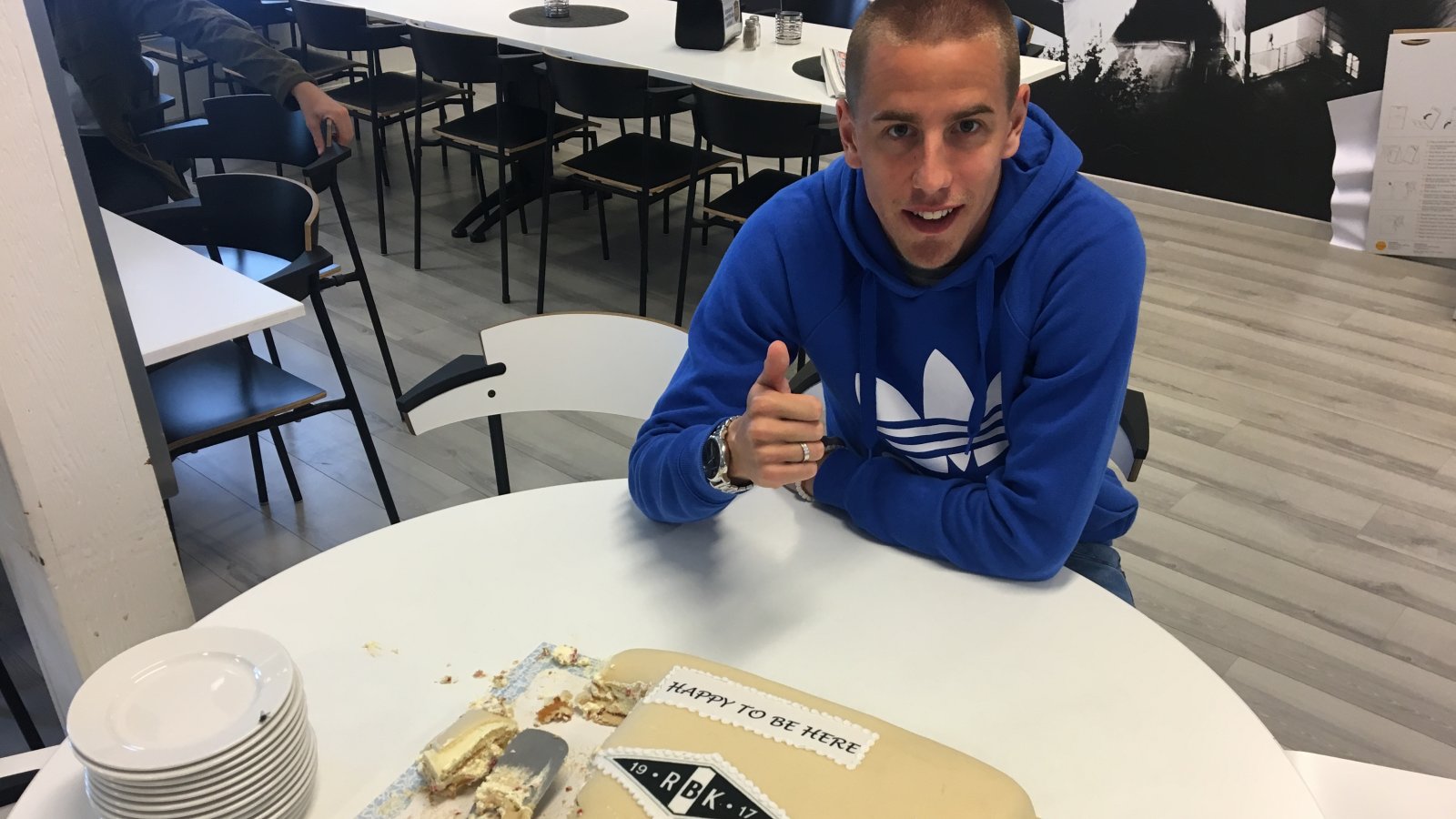 Jevtovic har spilt 22 kamper for Rosenborg i år og scoret 8 mål. I dag feiret han med å spandere kake på lagkameratene.