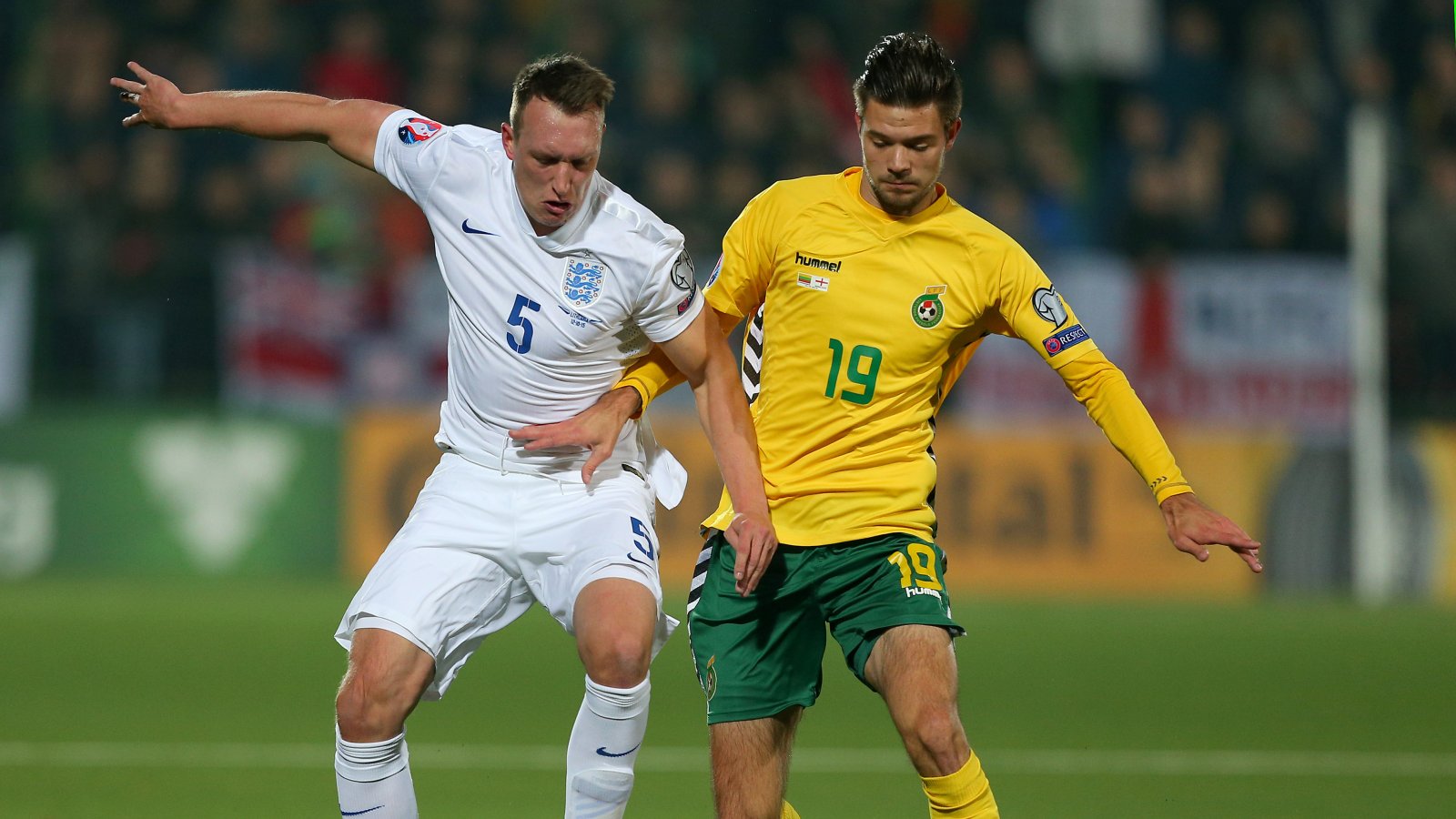 Spalvis gikk fra Aalborg til Sporting i fjor sommer. I sesongen 2015/16 scoret han 17 mål på 26 kamper for danskene. Spalvis har også en rekke landskamper for Litauen. På bildet øverst er Spalvis (til høyre) i en duell med Englands Phil Jones.