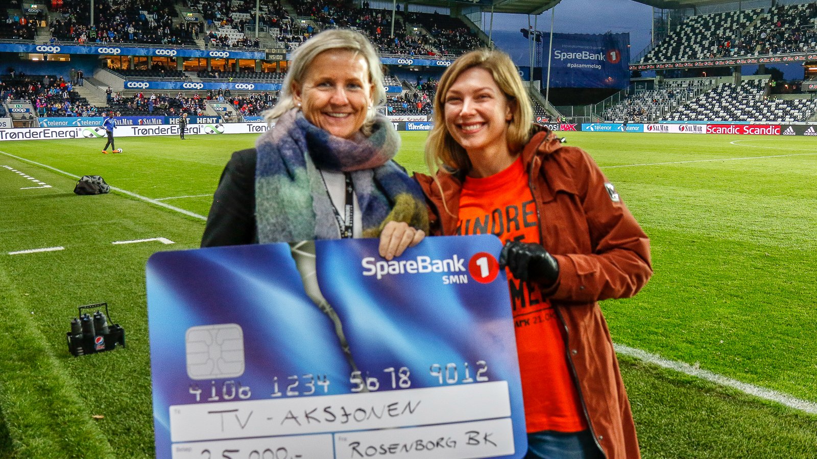 Byaksjonsleder i Trondheim, Hildegunn Gutvik, fikk æren av å motta en sjekk i pausen av kampen mellom Rosenborg og Sandefjord. TV-aksjonen gjennomføres søndag 21. oktober. Pengene skal gå til Kirkens Bymisjons arbeid for å skape et varmere og mer inkluderende samfunn.