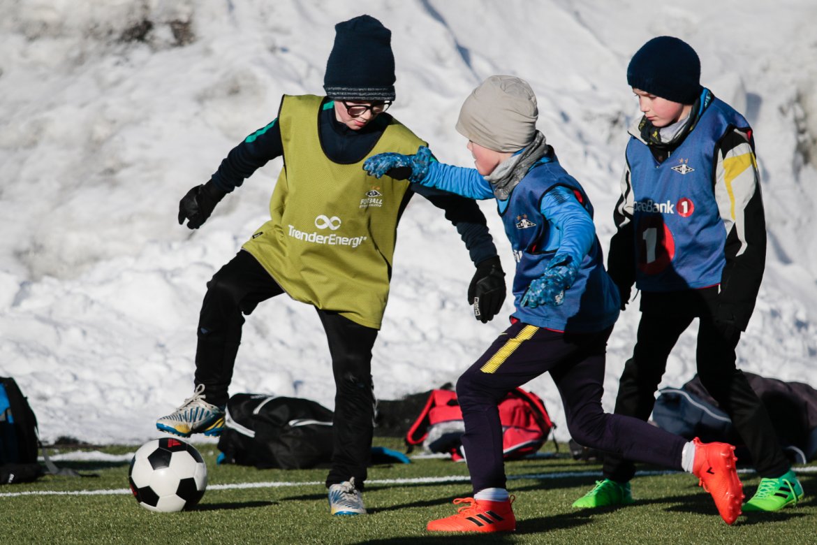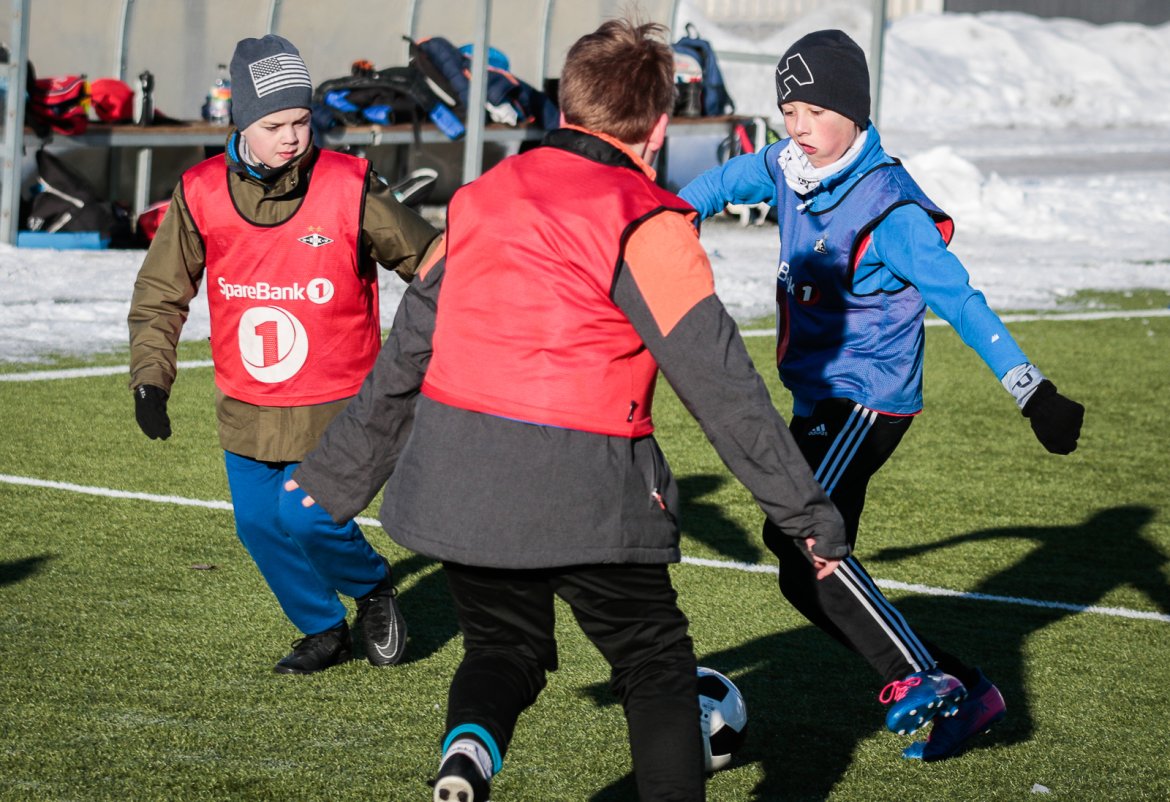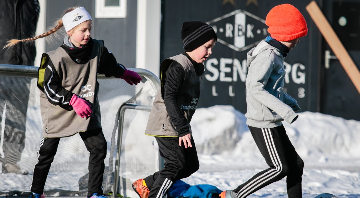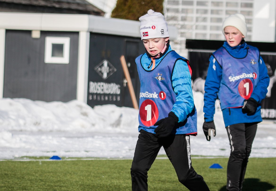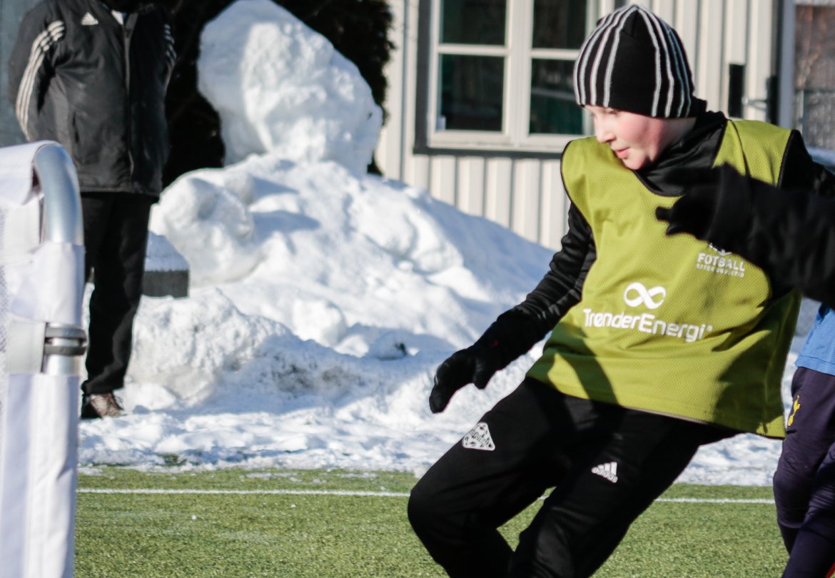 Som vanlig arrangerer Rosenborg fotballskole i ferien, og med masse varme klær gikk det fint å spille fotball på kunstgresset, også i tosifret antall minusgrader.