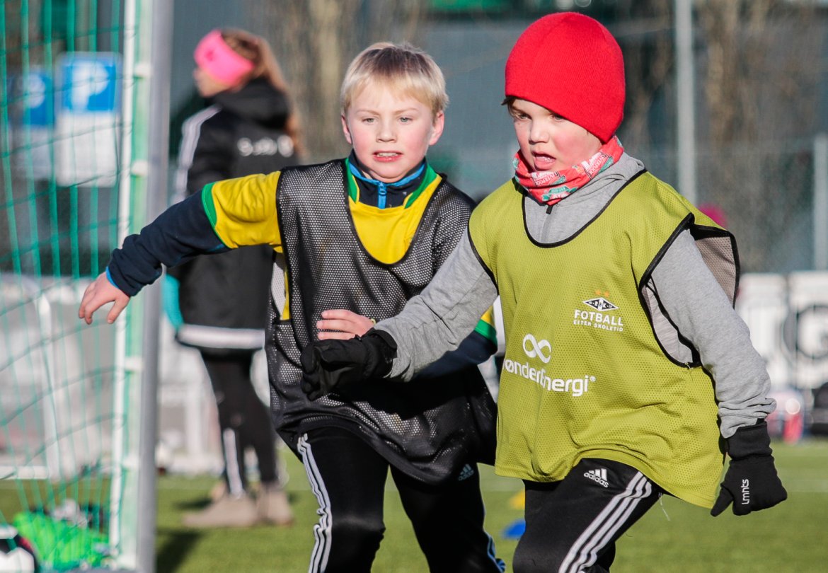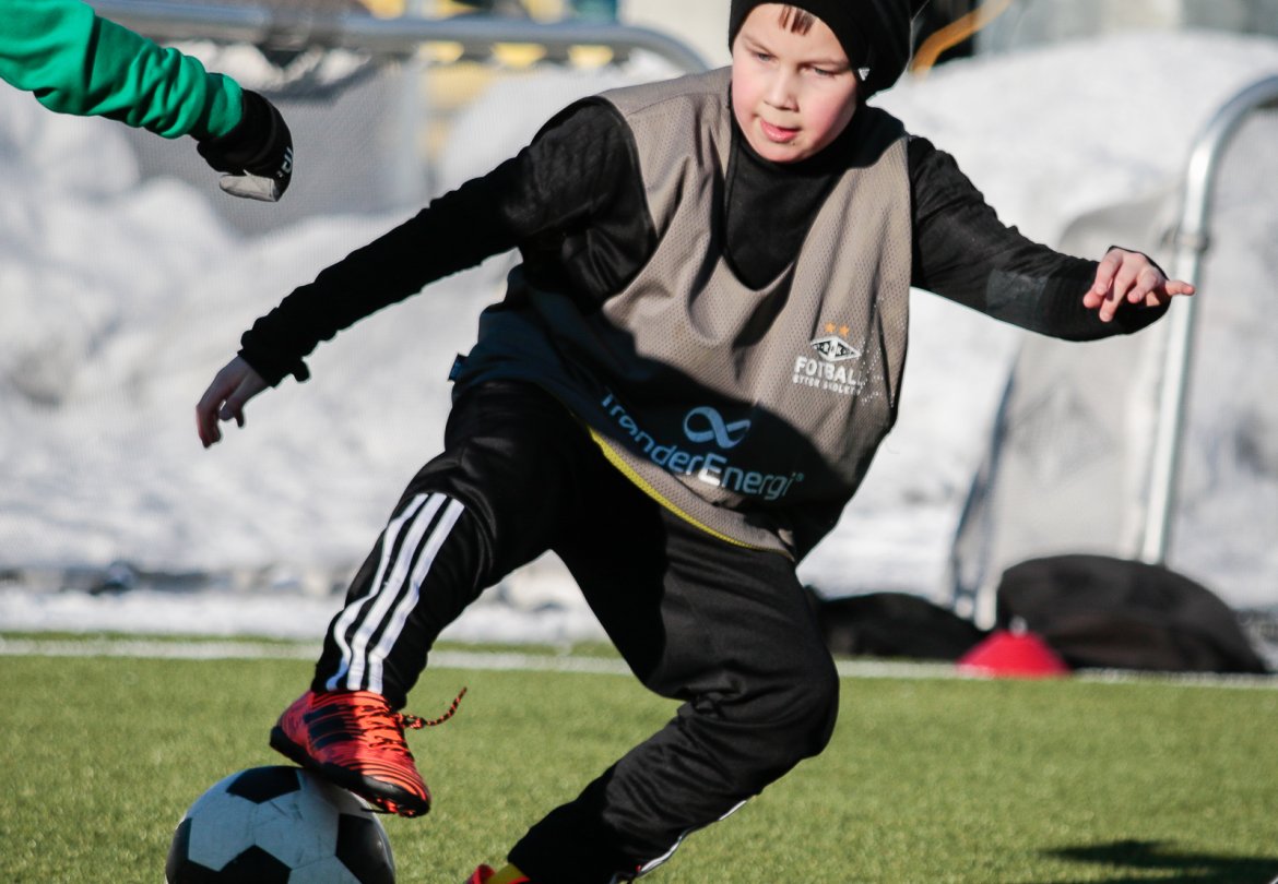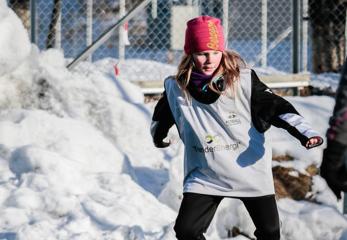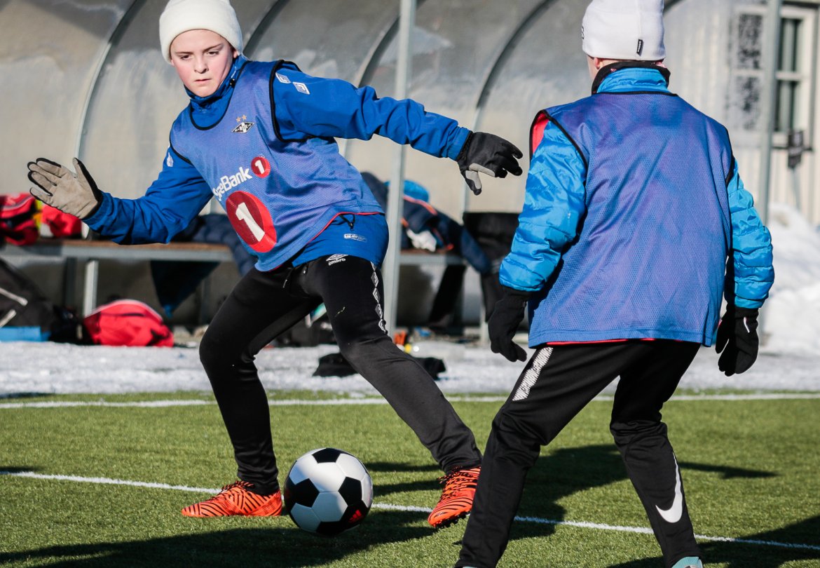 Som vanlig arrangerer Rosenborg fotballskole i ferien, og med masse varme klær gikk det fint å spille fotball på kunstgresset, også i tosifret antall minusgrader.