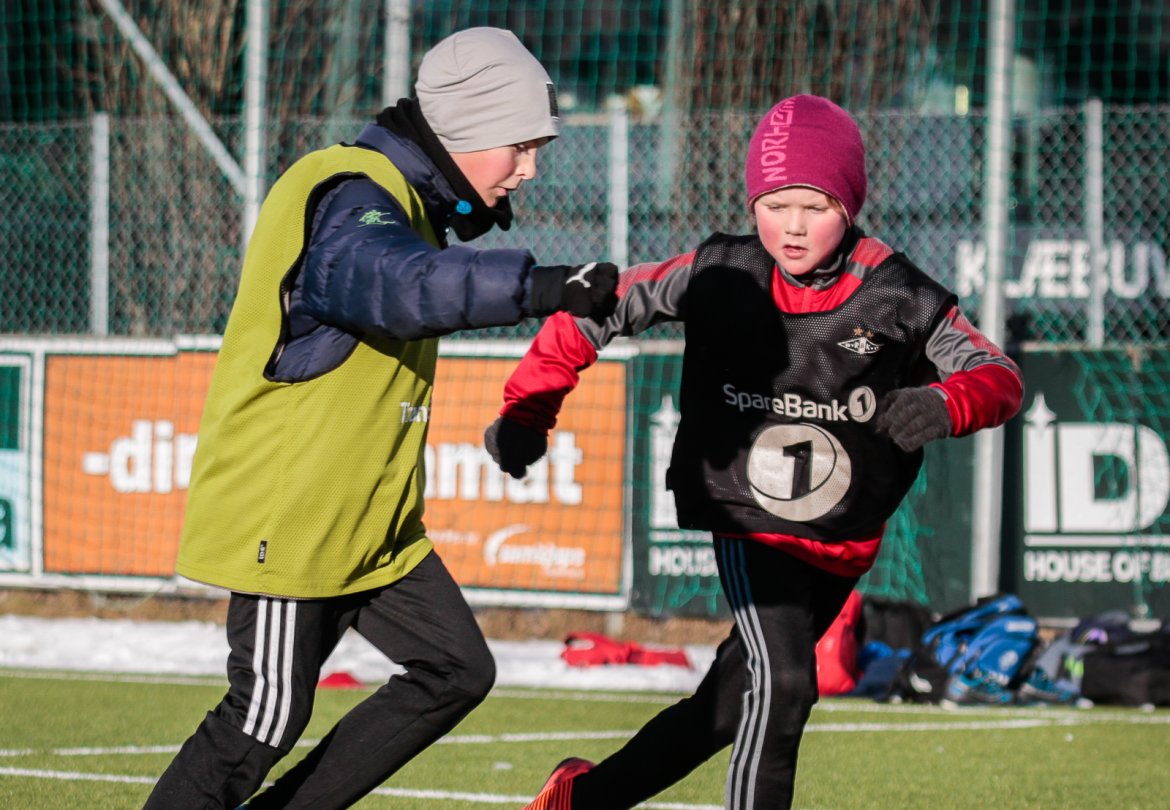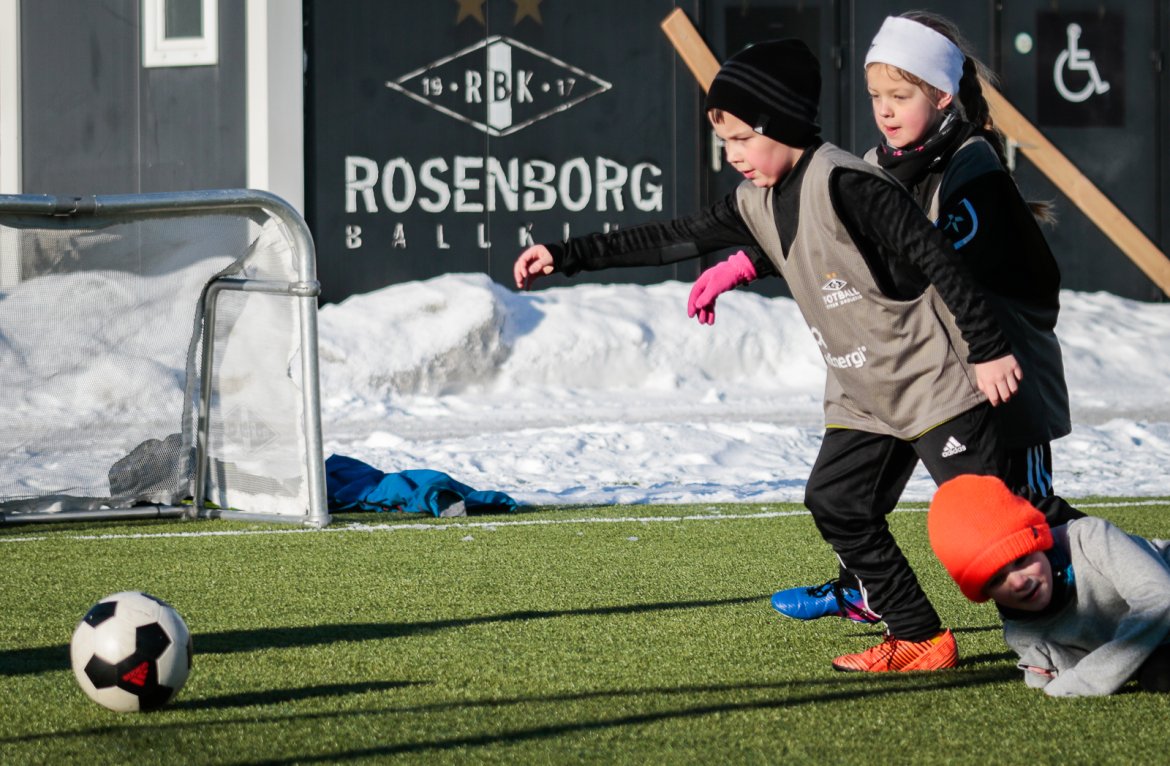 10 minusgrader satte ikke en stopper for deltakerne på RBK Fotballskole i vinterferien. Bildegalleri