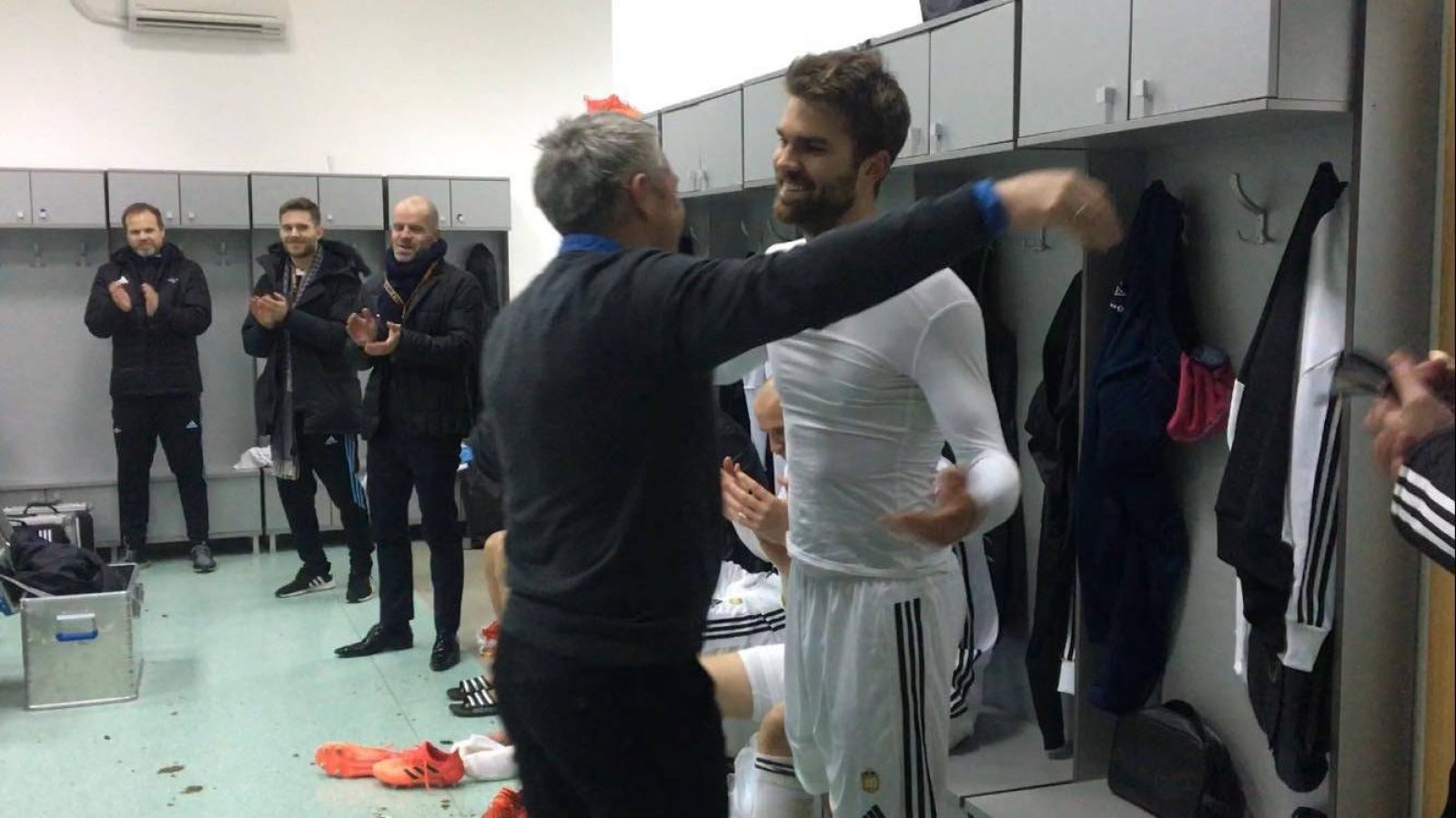 Rett etter kampslutt i Skopje ble Skjelvik og Milan Jevtovic takket av i garderoben. Før avreise Trondheim gjentok Kåre noe av det som ble sagt kvelden før til RBK.no.