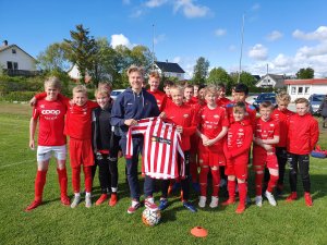 Alexander Søderlund har tatt ferie i Haugesund, men tok seg tid til å besøke guttelaget til Avaldsnes.