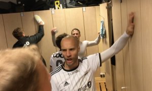 Slik feiret spillerne i garderoben etter 1-0-seieren over Sarpsborg 08.