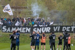 Dette banneret hadde Kjernen møtt opp med på den siste treningen foran Sarpsborg 08-kampen på Lerkendal.