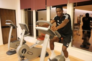 FARO: David Akintola ankom Rosenborgs treningsleir i Portugal onsdag kveld.