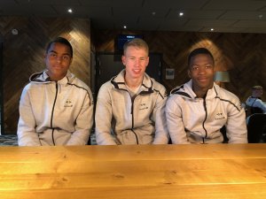 Førstereis-gutta Emil Konradsen Ceide, Torbjørn Heggem og Robert Williams vil mer enn gjerne få muligheten til å få spilletid i Mesterfinalen.