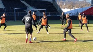 Spillerne hjalp selv å fjerne plastduken fra matta. Etterpå fikk de testet gresset for første gang i år.