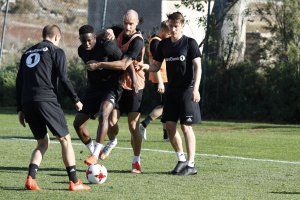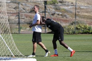 MASPALOMAS: Yann-Erik de Lanlay og Andreas Helmersen trener knalltøft for å komme tilbake på fotballbanen.